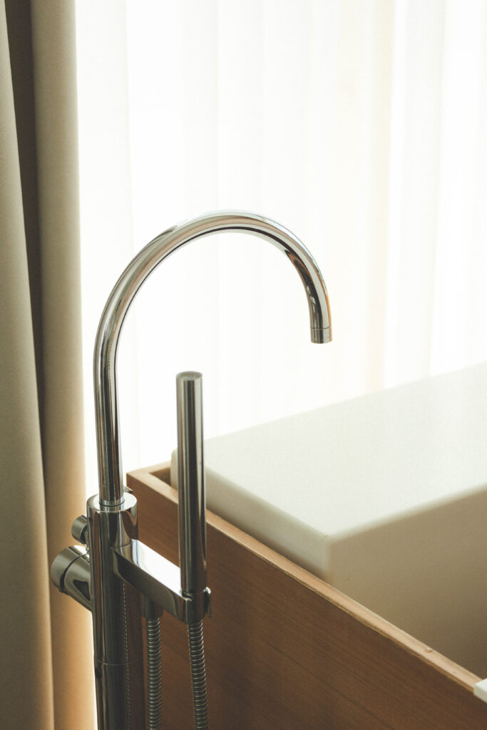 Sa ligne épurée et minimaliste est complétée par la chaleur du mélèze doré pour créer une ambiance paisible et conviviale.